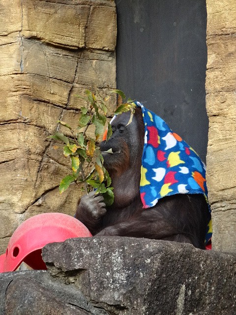オランウータン。多摩の子達は布が好きみたいです。